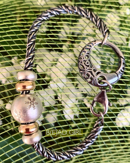 The soft knit bracelet has a very nice "rope" pattern, which differs from the classic Trollbeads "fox tail". The thickness is greater so the Trollbeads glass beads do not enter the bracelet, only the Universal Unique (with a wider through hole) and all the other beads of different brands. Some silver Trollbeads beads go in, not all of them.